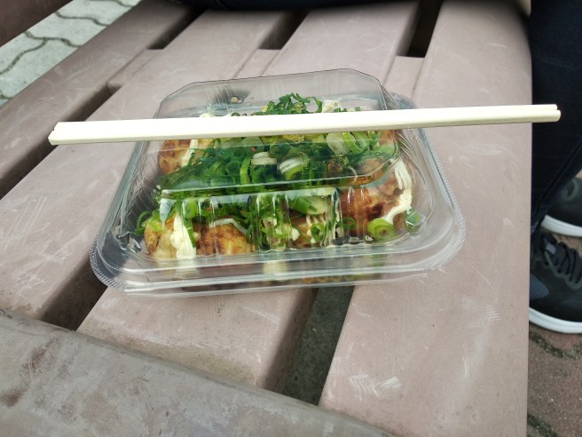 The whole deal about jet lag and time zone difference was overrated until this morning. Waking up at 11 in the morning, I panicked that Divya left without me, only to find her sleeping too! We both struggled to match the time zone and our sleeping pattern. Saikat somehow seems unaffected by the whole deal, as usual. After a quick breakfast, we rushed to the university. Going so late into the lab was a bit weird, but thankfully everyone was occupied with some discussion. Wait a minute! Was I also supposed to be a part of that? I hoped not and swiped my card to sneak in. Going about by my plan, I had a private discussion with my guide. New challenge, every day! He suggested I make a presentation, and I was unsure how would the communication barrier be dealt with. But, I had more ‘important things’ to worry about the presentation, so I let it pass. In a while when Divya pinged, it was time for my rescheduled medical checkup. We both went around for a walk before my appointment. That’s when ‘Takoyaki’ happened! To be honest, the first food that was an appetiser to me in Japan is Takoyaki. Deep fried, perfectly crafted, garnished with spring onions and mayo – the mouth watering ball of joy – except the octopus inside! Oh yeah, apparently the lady has been going crazy about it ever since the beginning of the Japan plan. Trust me, I could feel my stomach grumbling for food just by looking at the well-cooked Takoyaki balls. We made a video of she gobbling them, and that felt like the beginning of a great trip ahead!