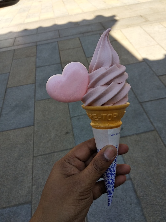 It was deers everywhere, and also were the sign boards that said that deers are wild animals. Honestly, I was scared. I didn’t want to linger around much. I tried and walked past a crazy lot of deers, as Divya and Saikat stayed back and fed the deers some rice crackers. That’s when I got my hands on the cherry blossom ice cream. Sakura is a fad, and yet I fall for it! It tasted good, but not awesome special! Perhaps, that’s the last time I fall for Sakura.